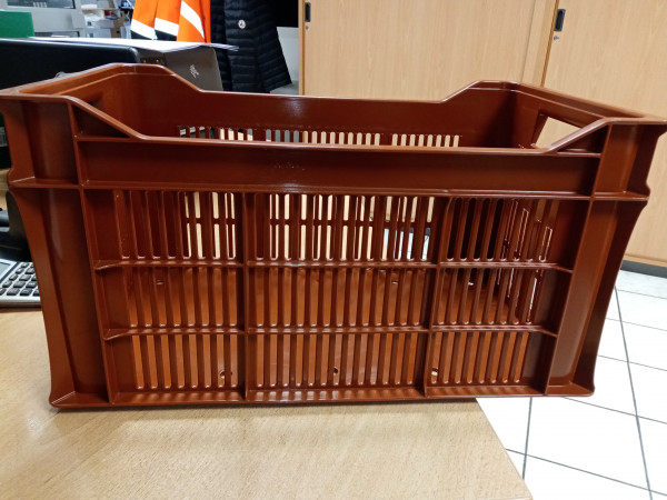 Bac plastique gerbable ajouré avec poignées ouvertes et un fond ondulé pour éviter que les fruits s’abîment lorsque les bacs sont empilés les uns sur les autres. Ce bac alimentaire est destiné pour toutes activités agroalimentaires. Bonne utilisation pour les fruits, légumes, fromages, viandes, viennoiseries, pâtisseries, confiseries, jeunes pousses…Couleur : Brun-Rouge. Norme « Contact alimentaire ». Sur demande.