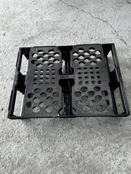 Demi palette plastique gerbable, légère. Alternative économique aux palettes en bois. Rebord spécialement conçu pour garantir une longue vie utile. Coloris : Noir.