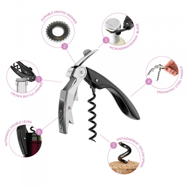 Tire-bouchon – Sommelier. Celui-ci va vous permettre d’extraire les bouchons de vos bouteilles rapidement et sans effort. Il offre une prise en main sûre, même en usage intensif.